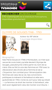 Ho “scaricato” la Dichiarazione di Olympe De Gouges: una biblioteca a portata di clic - #Bonjour #Paris n. 67-28/09/2018 I grandi classici della letteratura sono per la maggior parte firmati da uomini. Pensiamo alla cultura francese: i nomi che tornano alla mente sono Émile Zola, Victor Hugo, Marcel Proust, Charles Baudelaire… Ebbene, ieri ho letto su Ouest France un articolo di Valérie Parlan sulla discreta biblioteca composta da oltre 500 libri, firmati da 140 autori, totalmente